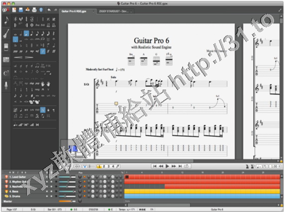 Guitar Pro 是一款倍受吉他手喜愛的吉他和弦、六線譜、BASS四線譜繪製、列印、查看