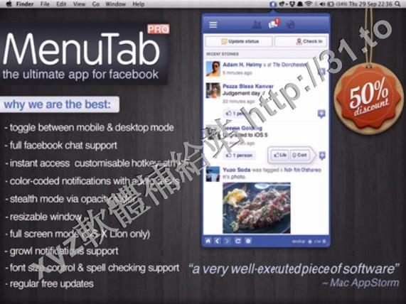 • MenuTab Pro for Facebook v4.3 MacOSX 英文正式版(Facebook 快速訪問軟體)